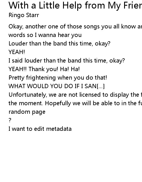| Unfortunately, we are not licensed to display the full lyrics for this song at the moment. Hopefully we will be able to in the future. Until then, how about a | |