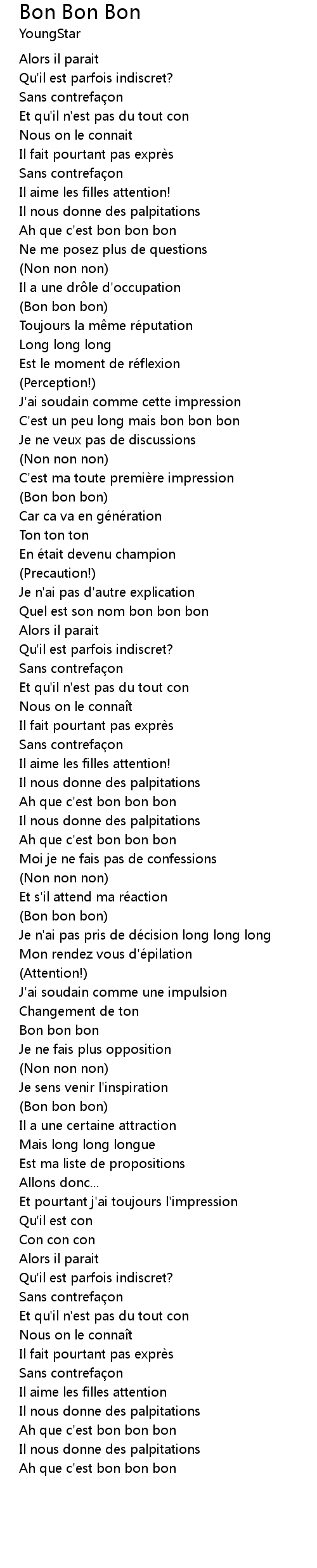 | [02:27.40] | Bon bon bon |