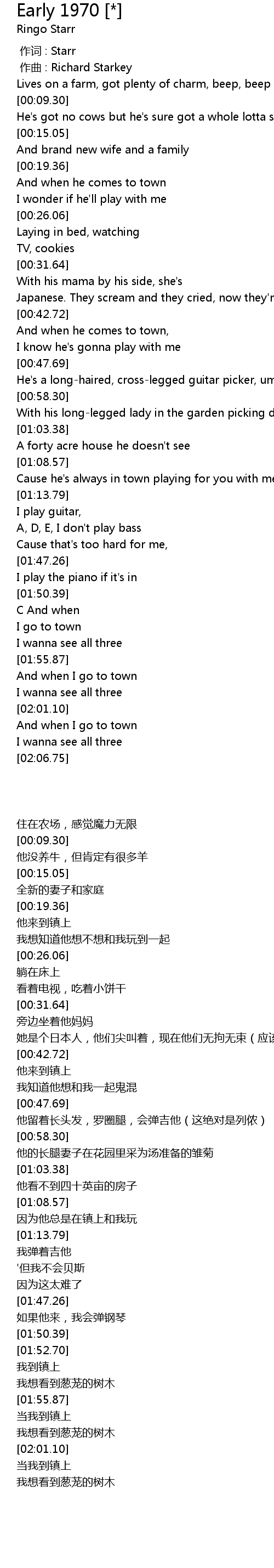 | [00:01.000] | 作曲 : Richard Starkey |