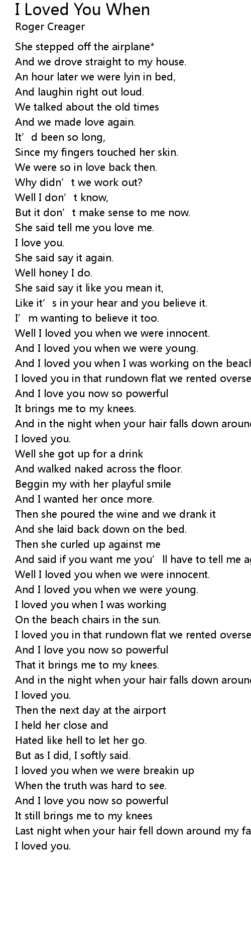 | And I loved you when I was working on the beach chairs in the sun. | |