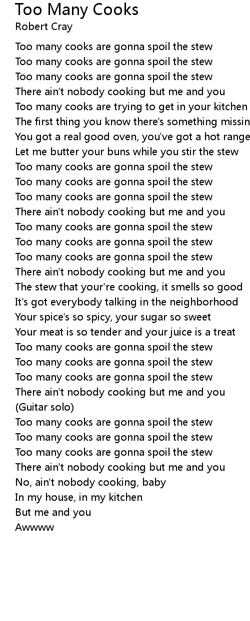 Too many cooks are gonna spoil the stew |