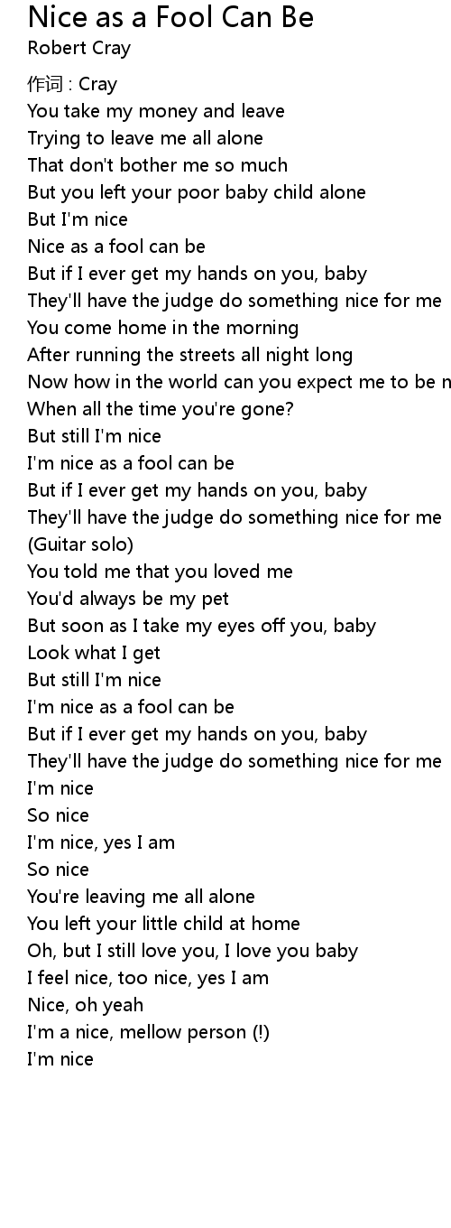 | 歌曲 | Nice as a Fool Can Be |