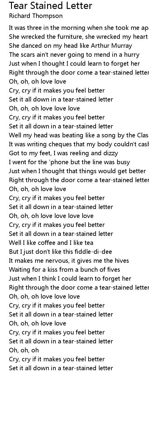 Set it all down in a tear-stained letter |