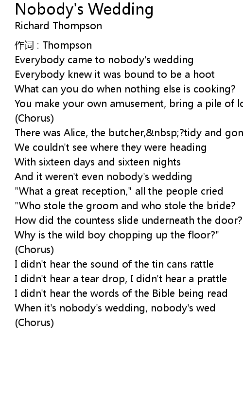 | 歌曲 | Nobody's Wedding |