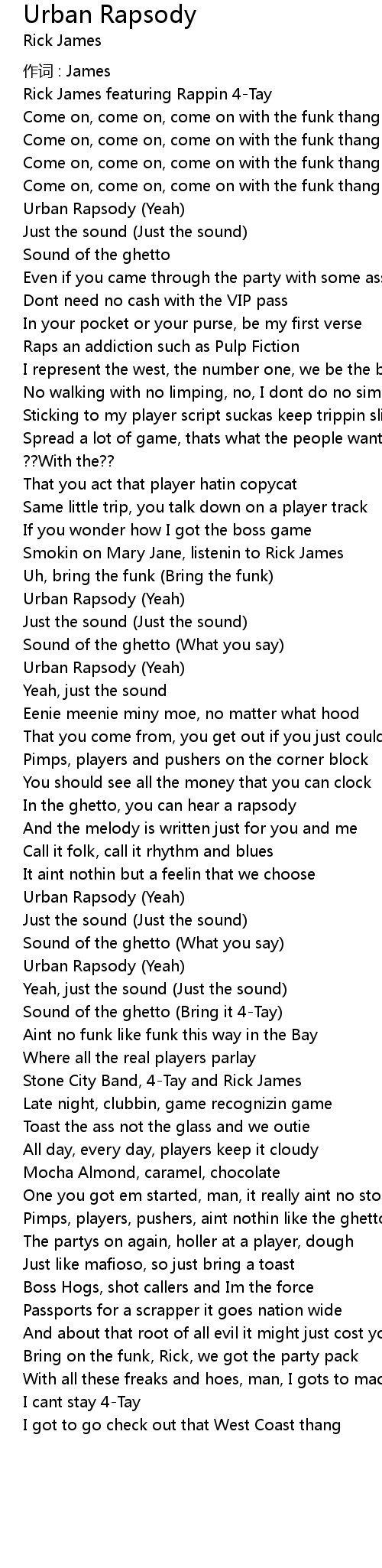 | 歌曲 | Urban Rapsody |