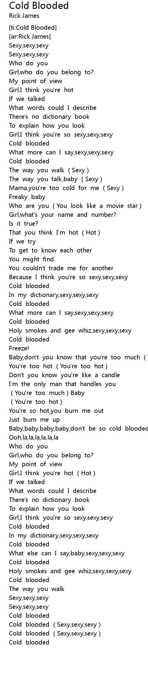 | [04:07.38] | Cold blooded |
