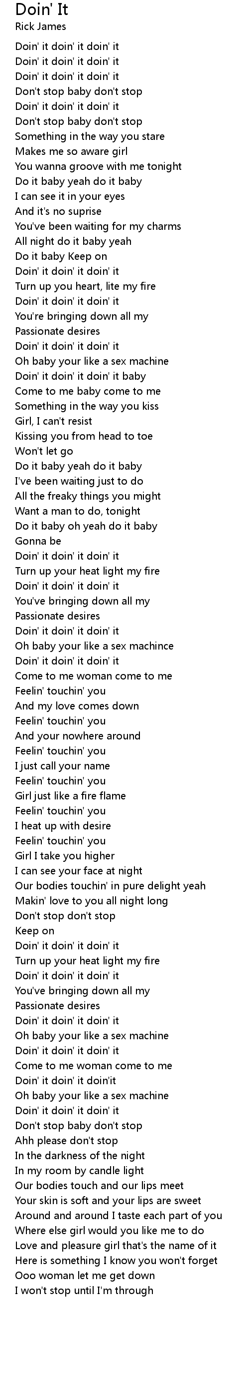 Doin' it doin' it doin' it baby