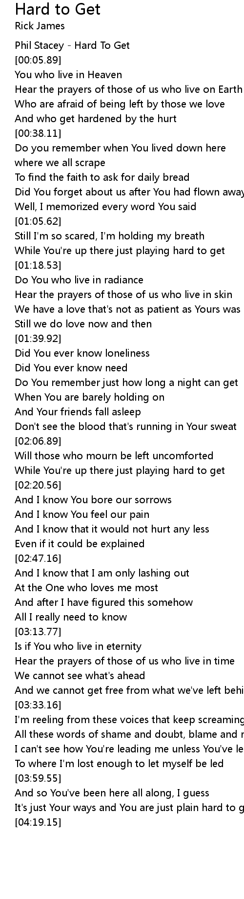 It's just Your ways and You are just plain hard to get |