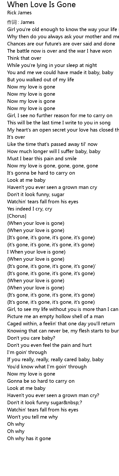| Now my love is gone, gone, gone, gone | |