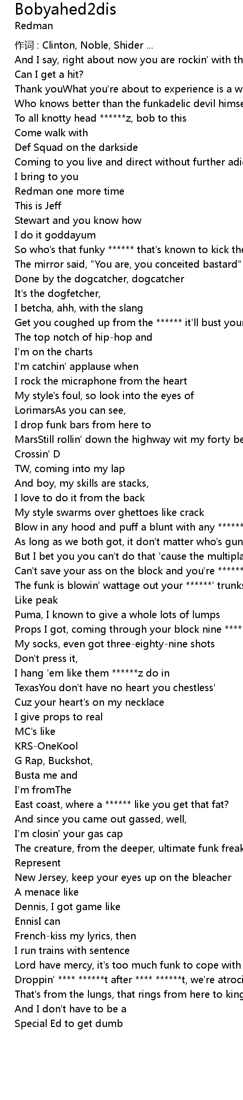 | So who's that funky ****** that's known to kick the fat ******t? | |