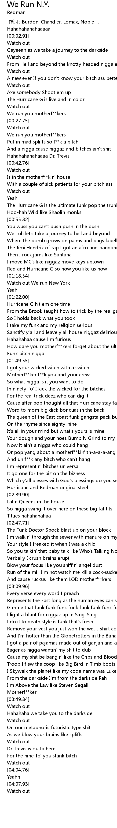 | [01:51.95] | Motherf ker f k you and your crew |