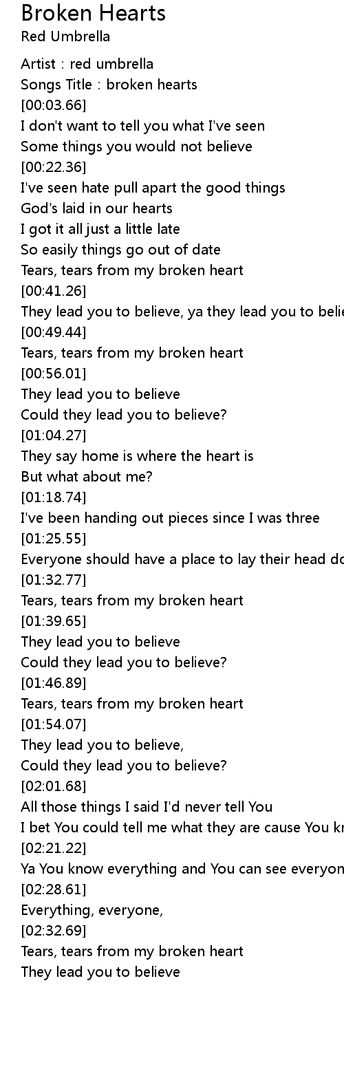 | [00:02.42] | Songs Title: broken hearts |