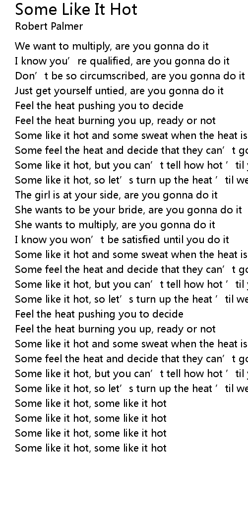 | Some like it hot, so let' s turn up the heat ' til we fry | |