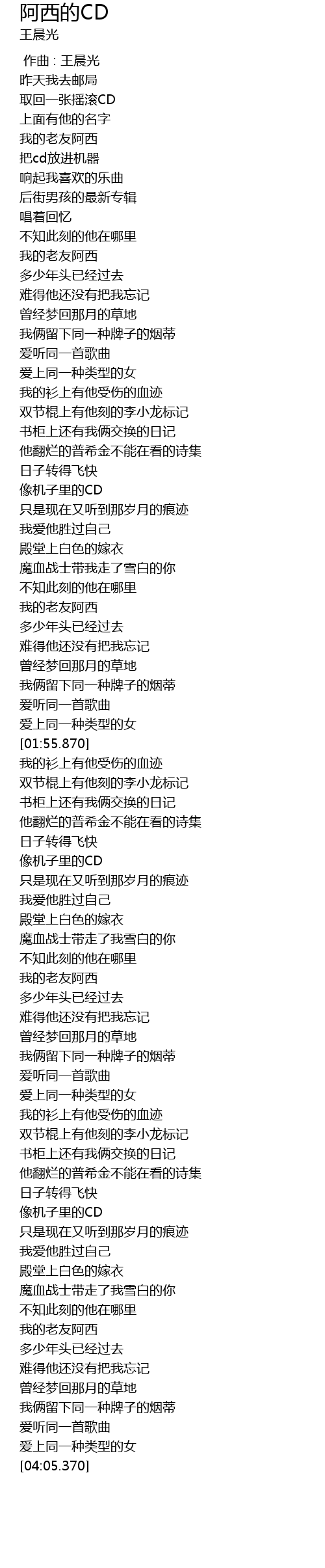 | [01:37.880] | wǒ de lǎo yǒu ā xī |