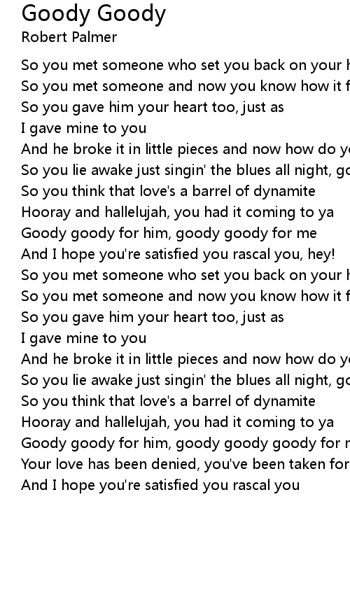 Goody goody for him, goody goody goody for me |