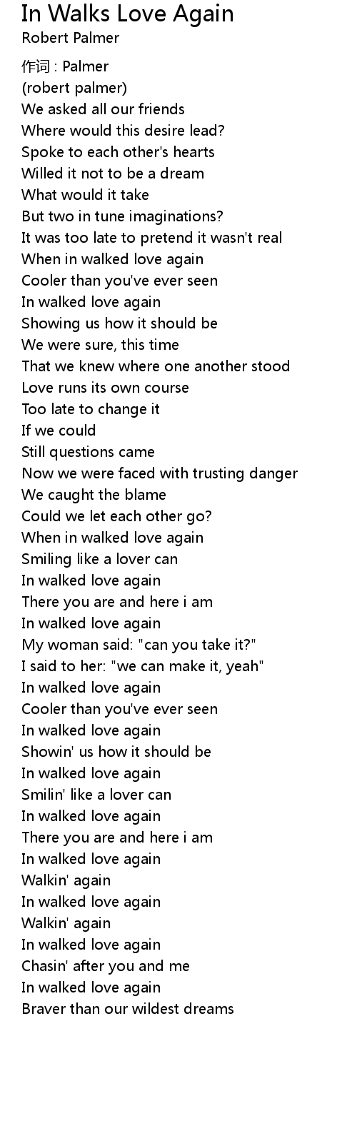 | In walked love again | |