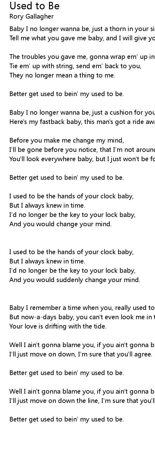 Better get used to bein' my used to be. |