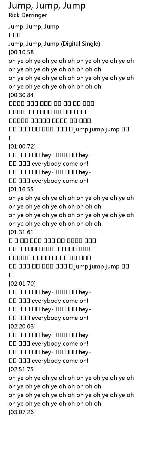 | [00:08.25] | Jump, Jump, Jump (Digital Single) |