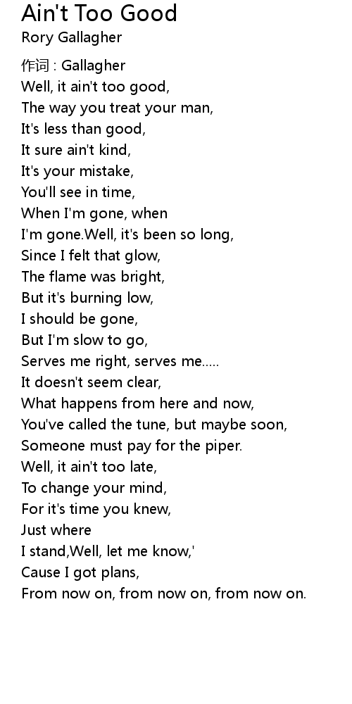 | 歌曲 | Ain't Too Good |