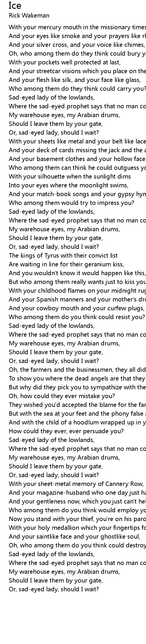 Or, sad-eyed lady, should I wait?