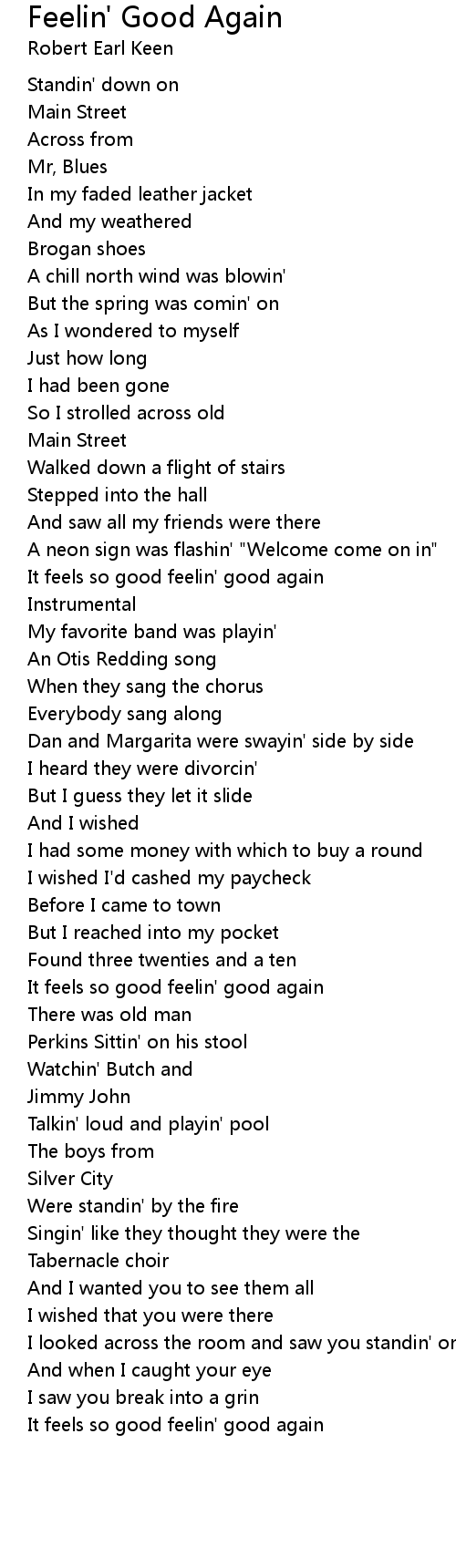 It feels so good feelin' good again |