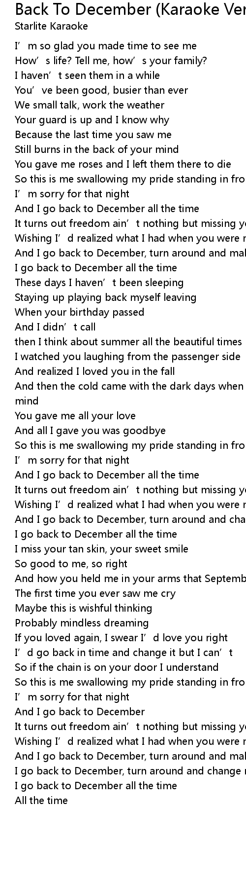 | [01:17.50] | And I go back to December, turn around and make it all right |