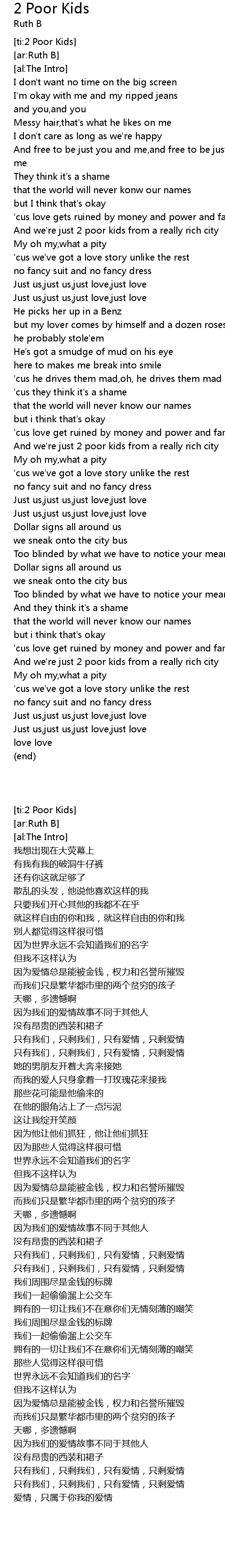 [ti:2 Poor Kids] |