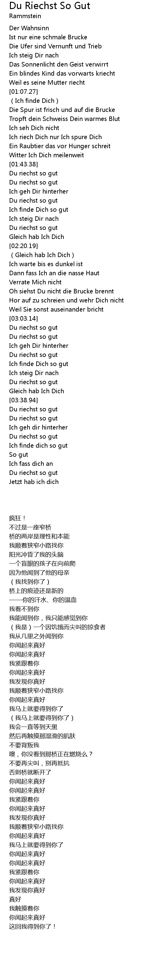 | [01:54.63] | Du riechst so gut |