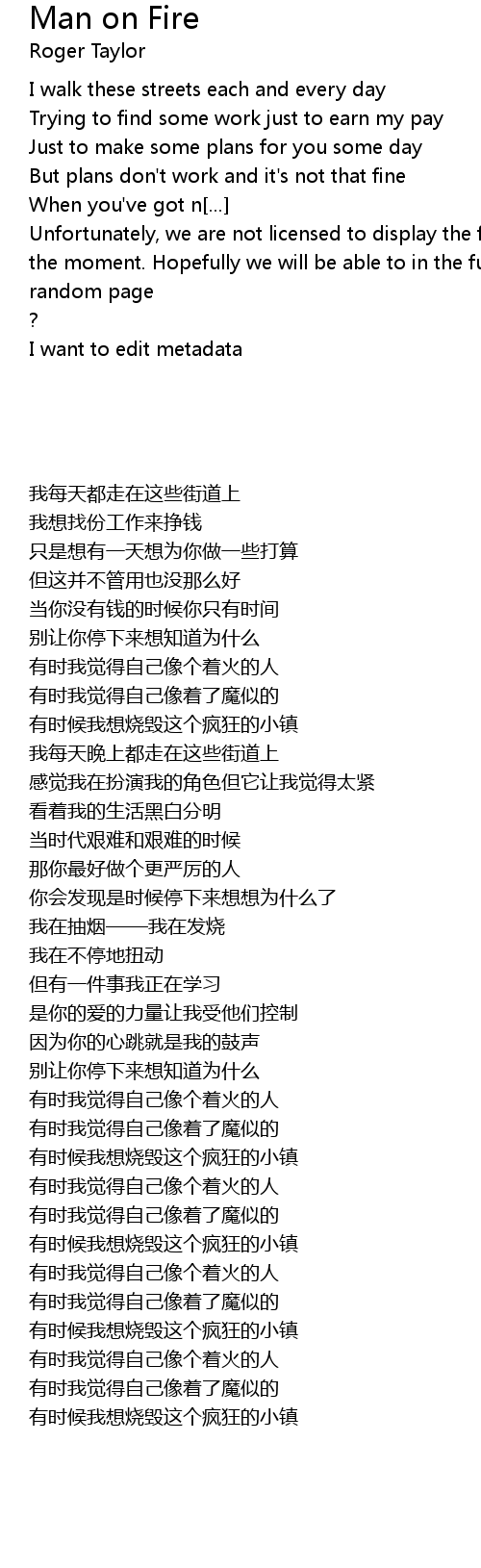 | [00:42.01] | 有时我觉得自己像个着火的人 |
