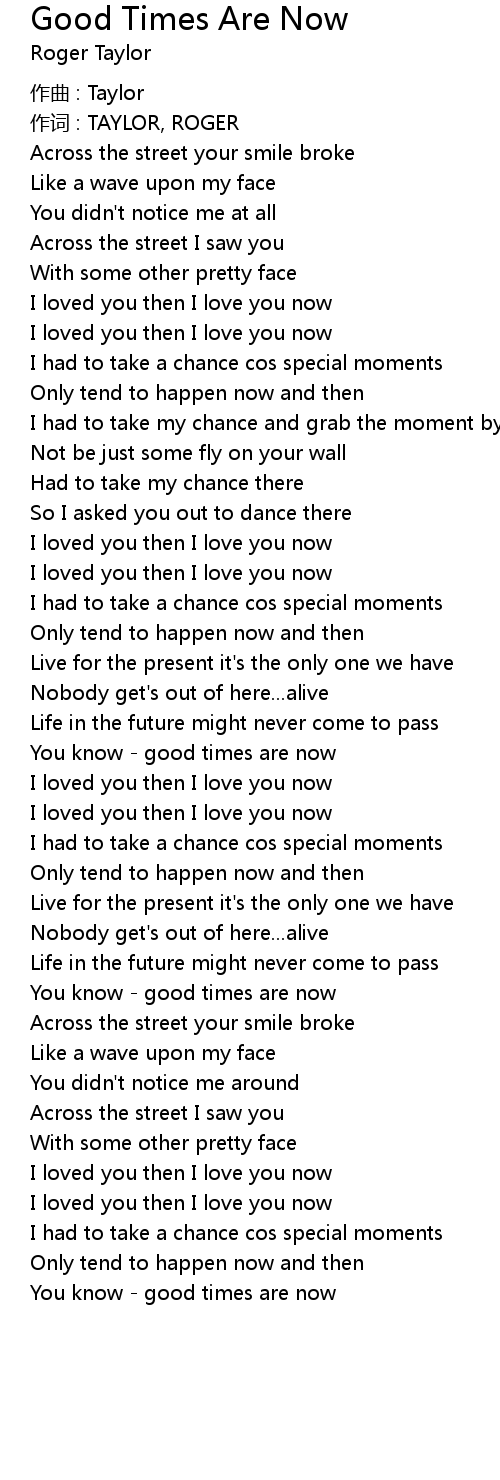 | 歌曲 | Good Times Are Now |