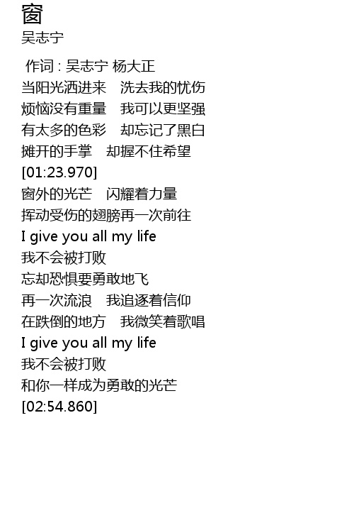 | [00:00.00] | 作词 : 吴志宁 杨大正 |