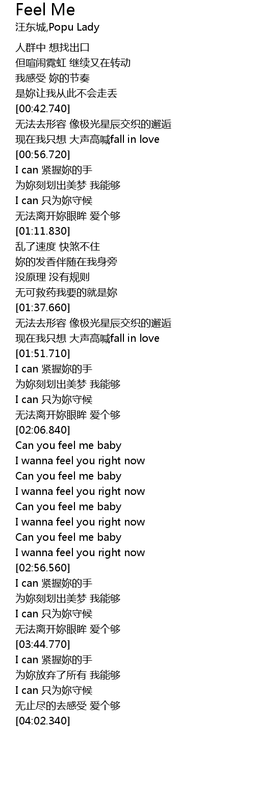 | [02:43.400] | I wanna feel you right now |
