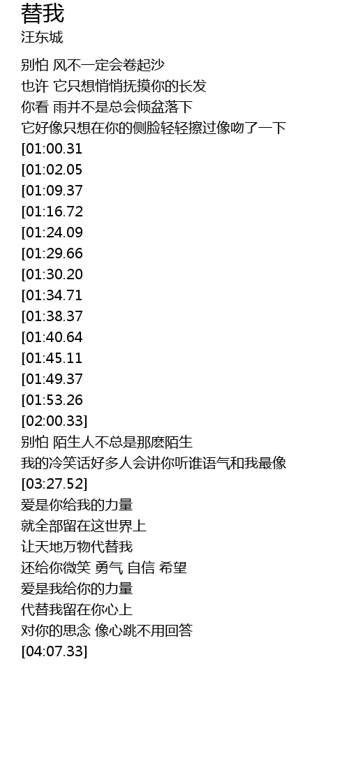 | [03:11.80][01:45.11] | 爱是我全部的力量 |