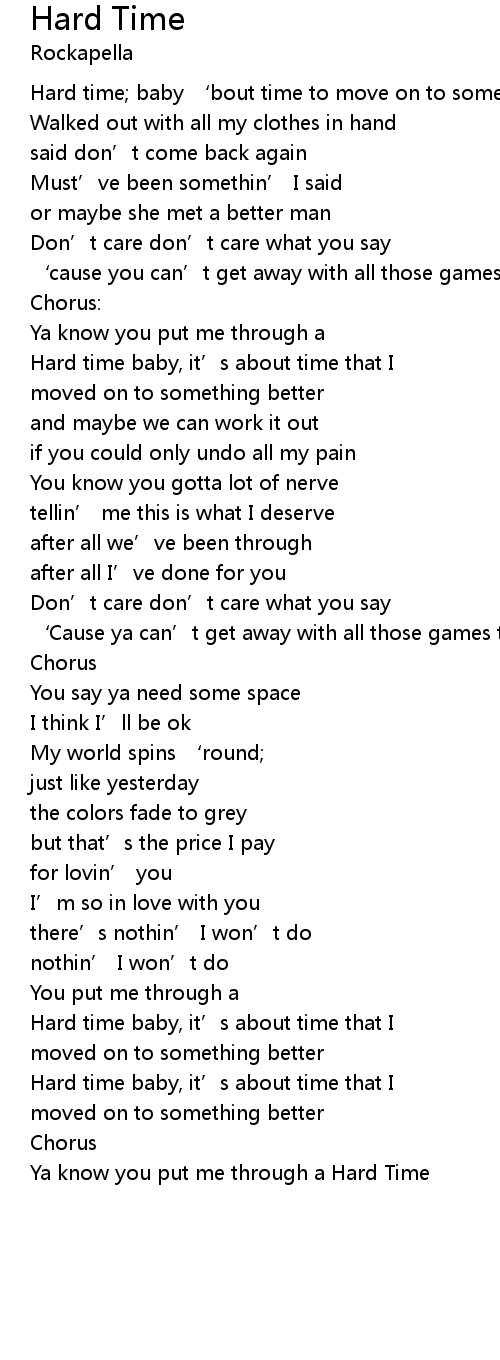 | Hard time; baby ‘bout time to move on to somethin’ better | |