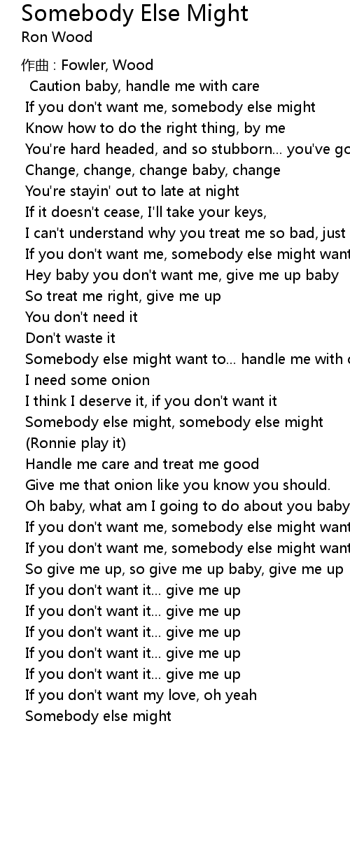 | Somebody else might, somebody else might | |