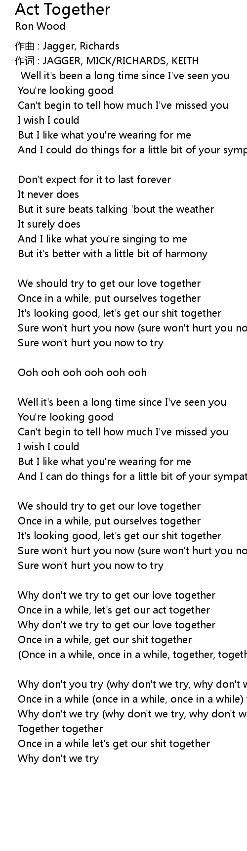 | Why don't you try (why don't we try, why don't we try) together | |