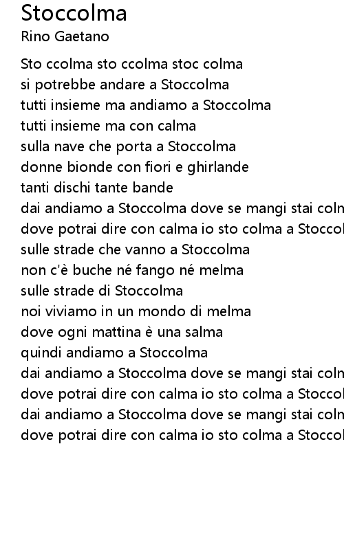 | dove potrai dire con calma io sto colma a Stoccolma | |