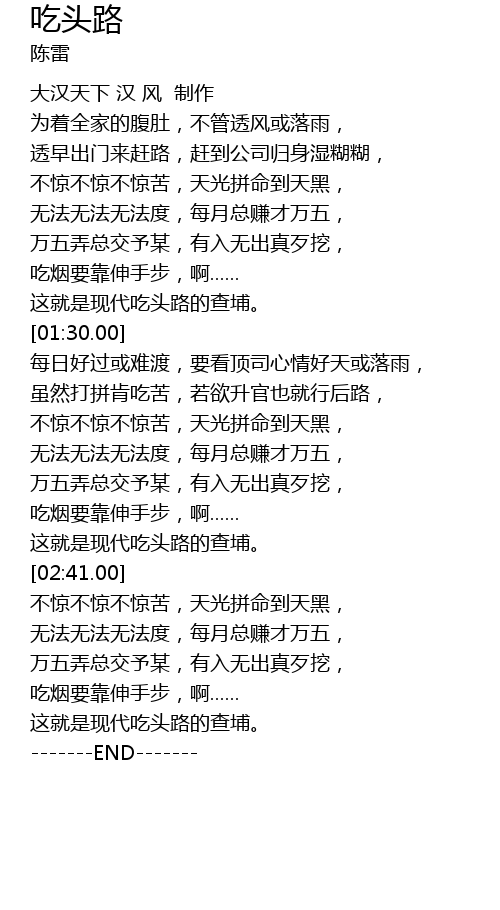 | [02:32.00] | 这就是现代吃头路的查埔。 |