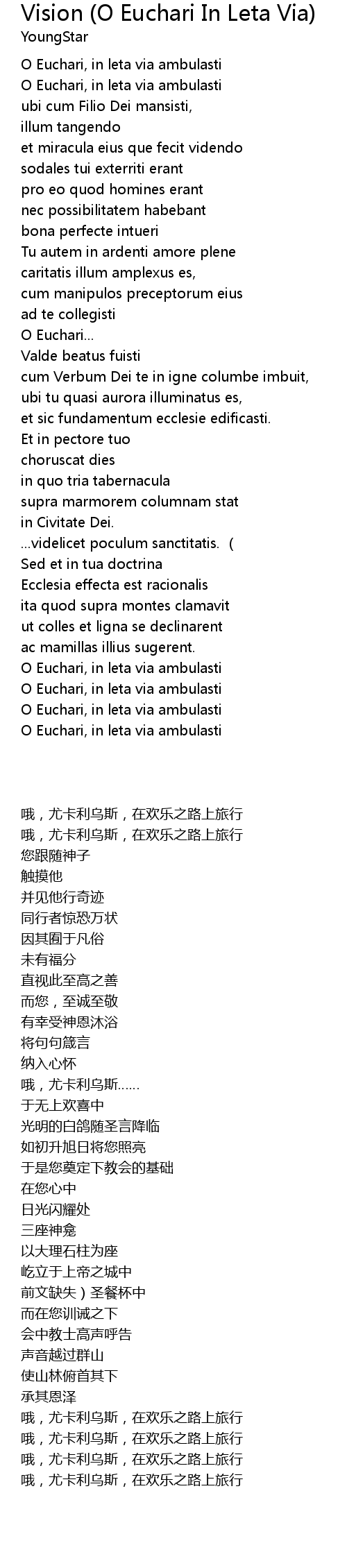 | 歌曲 | Vision (O Euchari In Leta Via) |