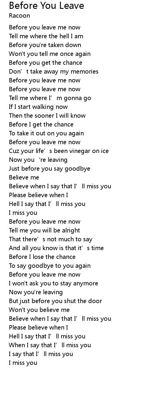 | [00:18.40] | Before you leave me now |