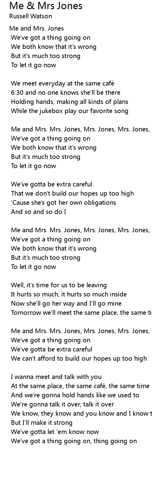 | Me and Mrs. Mrs. Jones, Mrs. Jones, Mrs. Jones, Mrs. Jones | |