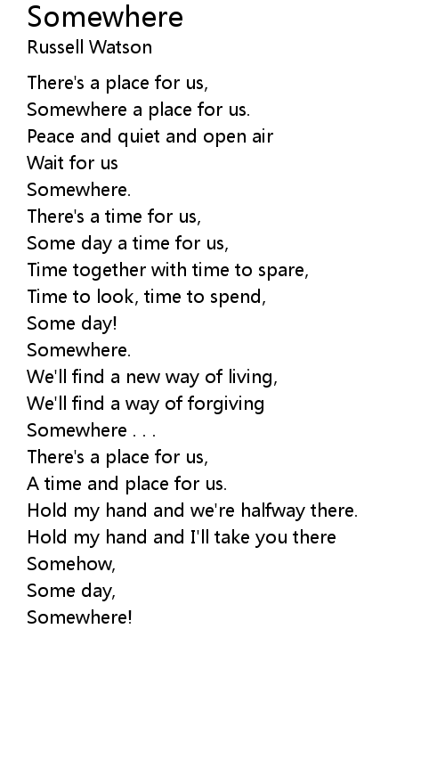 | Somewhere a place for us. | |