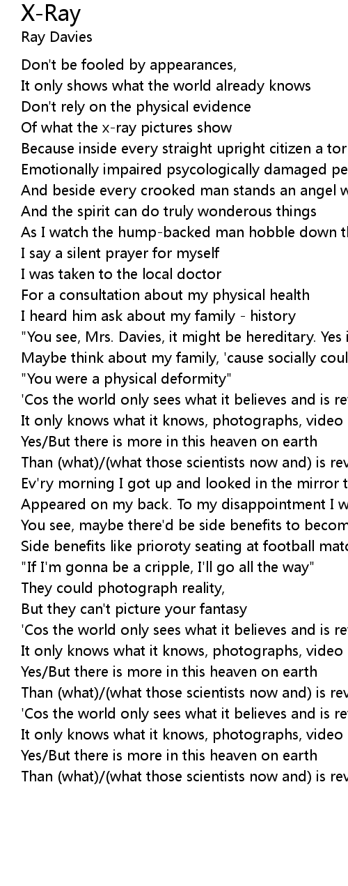 'Cos the world only sees what it believes and is revealed in the x-ray |