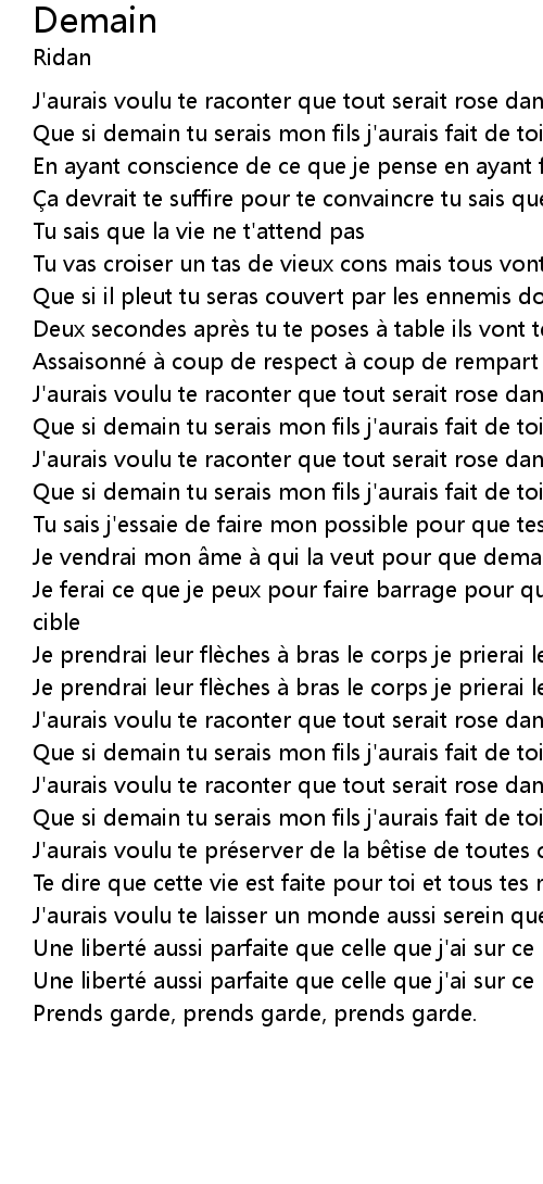 | Je prendrai leur fle ches a bras le corps je prierai le ciel de faire un effort | |