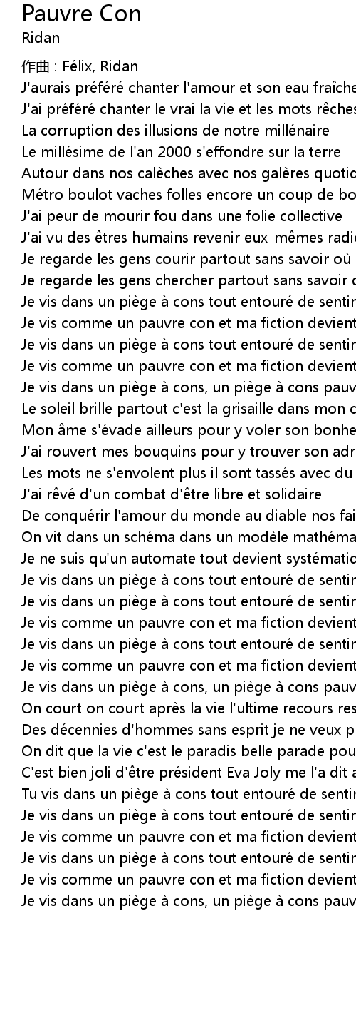| 歌曲 | Pauvre Con |