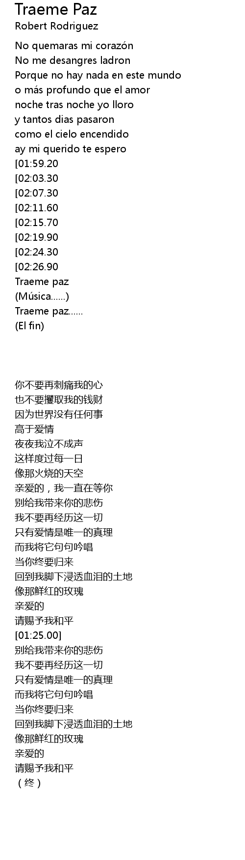 | [00:52.30][01:59.20] | no me traigas tu pesar |