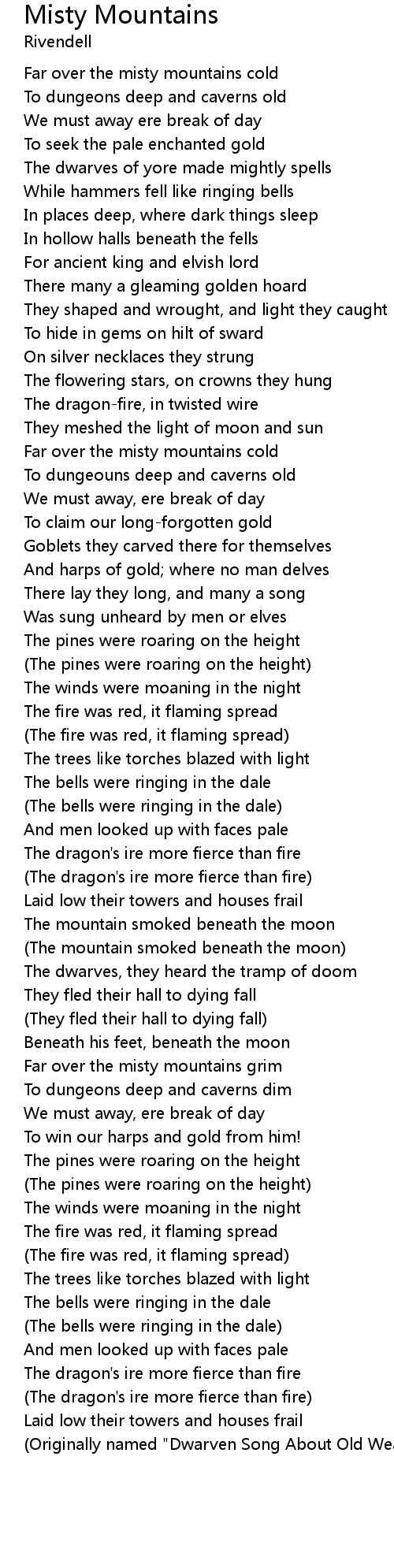 (Originally named "Dwarven Song About Old Wealth" by Tolkien)