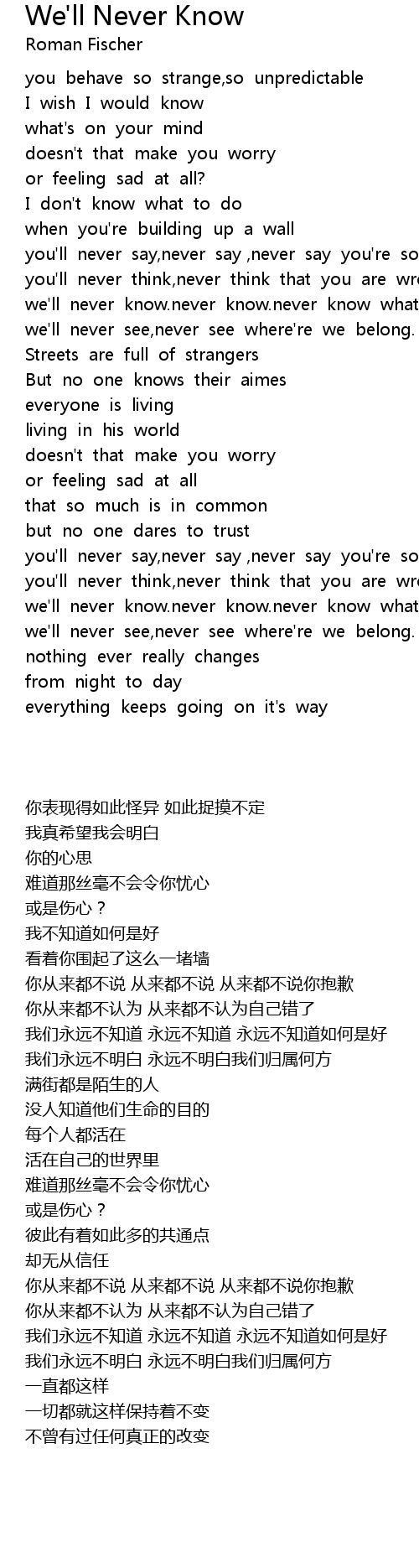 we'll never see,never see where're we belong. |