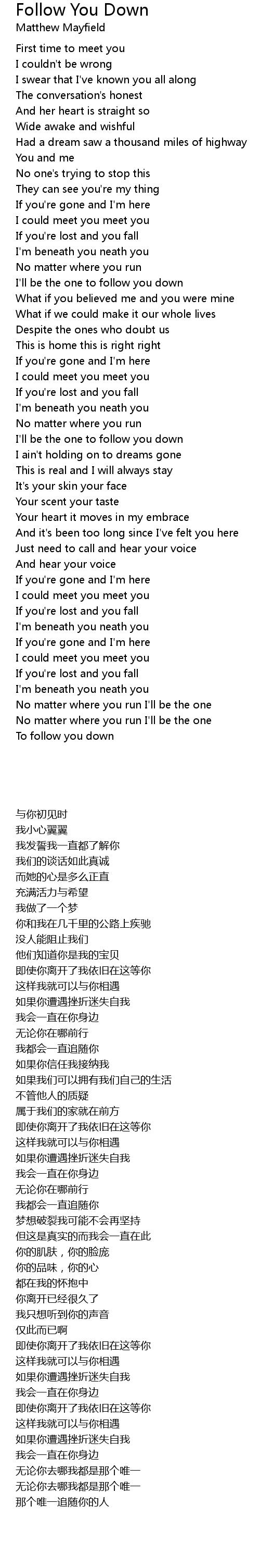 I'll be the one to follow you down |