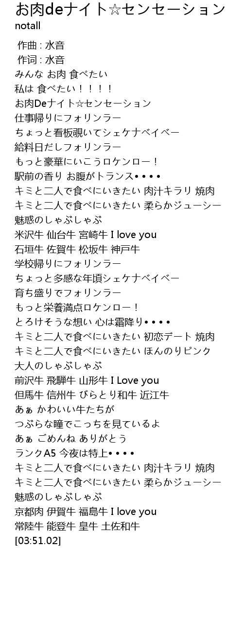 | [03:33.49] | 京都肉 伊賀牛 福島牛 I love you |